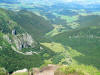 Cotés nord et ouest du piton, une coulée de basalte descend doucement et supporte des prairies et tourbières.